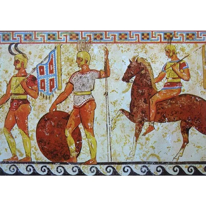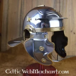 Ce casque est fait après plusieurs images de guerriers Samnitic. Les Samnites vivaient dans une partie de la chaîne des Apennins sur la péninsule italique. Le casque est fait d’après un original à partir d’env. le 3ème siècle avant JC. Autour de ce temps les Samnites ont été incorporées par la jeune république romaine.