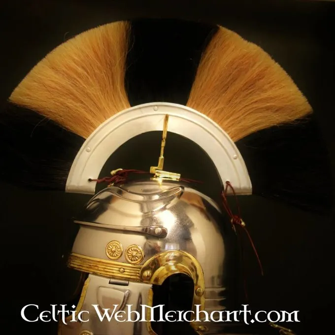 Ceci est une réplique d’un casque romain trouvé dans Weisenau, un quartier de Mayence. Les dates originales d’environ 50 à 75 après JC. et est exposé à Worms, Allemagne. Cette galeahelm dispose haut de la tête et a été porté par le optionnel. Ce casque romain en acier épais de 1,3 mm. Il est adapté pour une circonférence de la tête jusqu’à 62 cm.