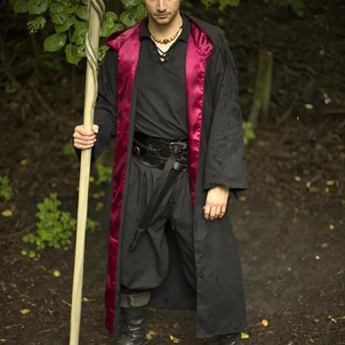 Cette robe est parfaite pour le GN et le cosplay de personnages magiques. La robe a de longues manches larges et une grande capuche. L’intérieur de la capuche et la doublure intérieure sont garnis de satin de couleur rouge.