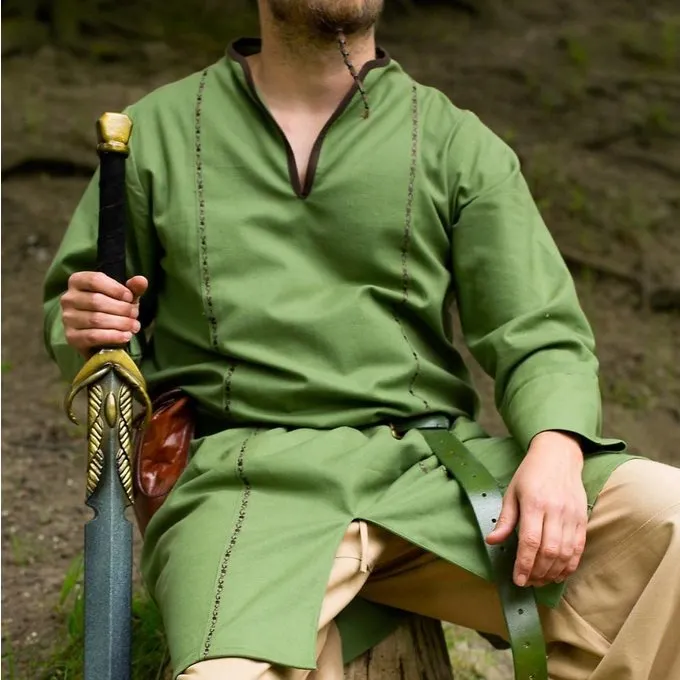 Cette tunique s’inspire du royaume Elfique mythologique. C’est parfait pour les personnages LARPing Elfs et Dark Elf. Le décolleté donne à la tunique un caractère extra élégant. Les coutures sont brodées de motifs inspirés par les elfes du Seigneur des Anneaux et du Hobbit. Cette tunique est parfaite pour combiner avec des épées et des écrans élaboles ou avec un arc.