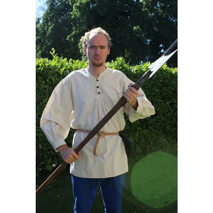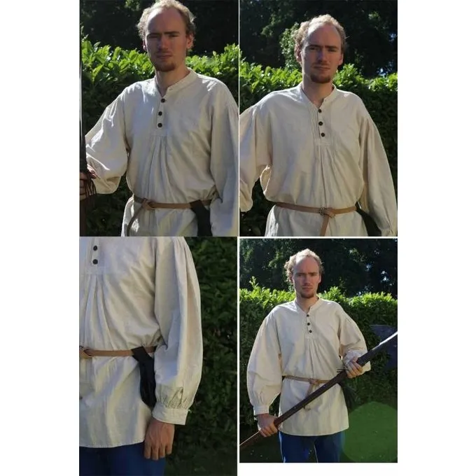 Cette chemise peut être fermée par des boutons en bois. Il est disponible dans les couleurs blanc, crème, noir et rouge de la taille S à XXXL, se il vous plaît voir les menus déroulants ci-dessus. La version de la crème est faite d’un mélange de draps en coton, les autres versions sont faits de coton.