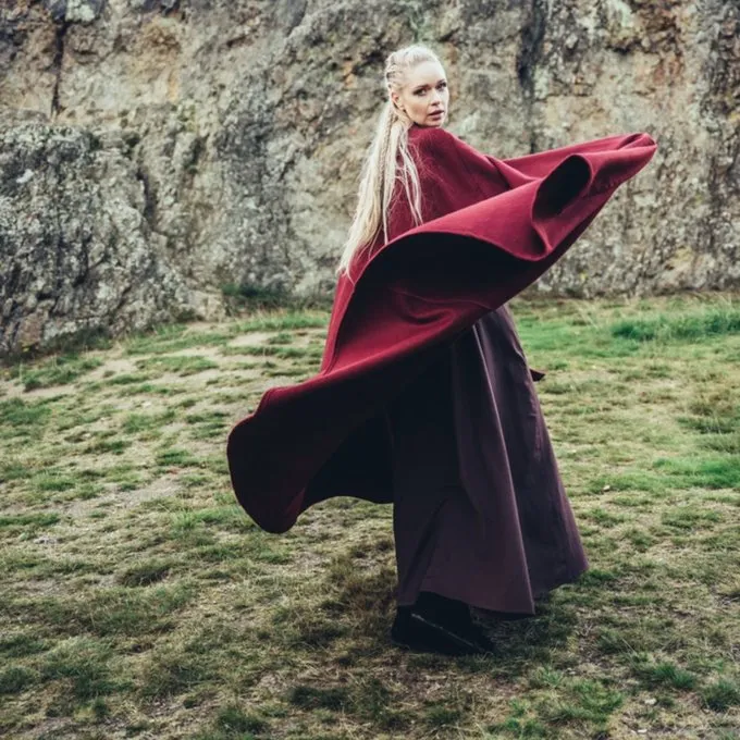 Un manteau médiéval fonctionnel adapté à la réédition de plusieurs périodes. Ce manteau protège de la pluie, du vent et du soleil. Parfait pour les campements d’été et d’hiver. Le manteau est en mélange laine et est disponible dans les couleurs: noir, rouge, vert, brun, gris, bleu foncé.