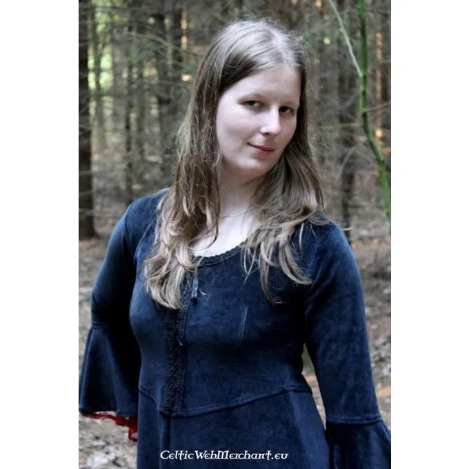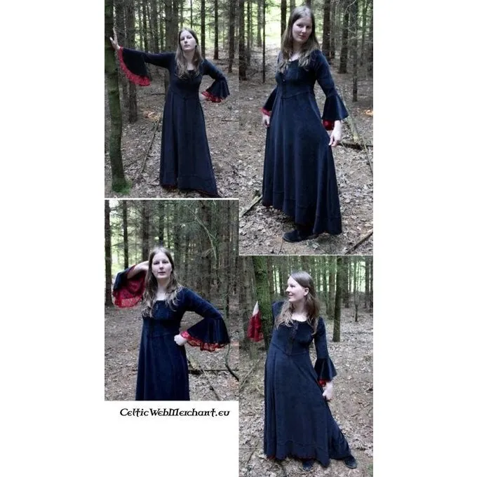 Cette robe est faite de doux, velours noir. Le corsage et les bords des manches se terminant large sont ornés de dentelle rouge et de la broderie. Il est livrable en taille S / XXXL.