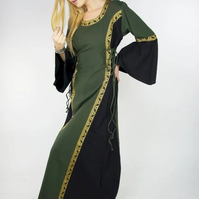 Cette robe est faite de coton. A l’avant, encolure et aux manches, il est orné de bandes décoratives qui donnent la robe un caractère sophistiqué. Les deux parties ont cordons pour un ajustement optimal. La robe est disponible dans les tailles S à XXXL.