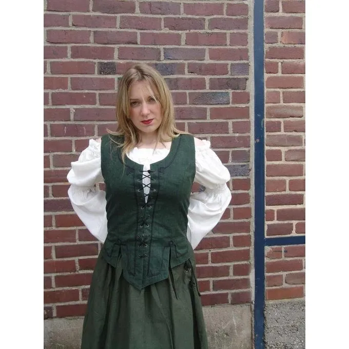 Cette veste sans manches est fait de coton. A l’avant, il peut être enfilé avec une corde à l’arrière et il peut être ajusté à la bonne dimension avec un lacet. La veste est disponible dans les couleurs noir, vert, bleu, rouge, brun foncé et le tabac dans les tailles S à XXXL.