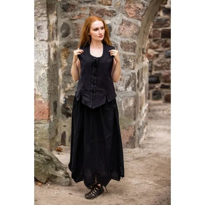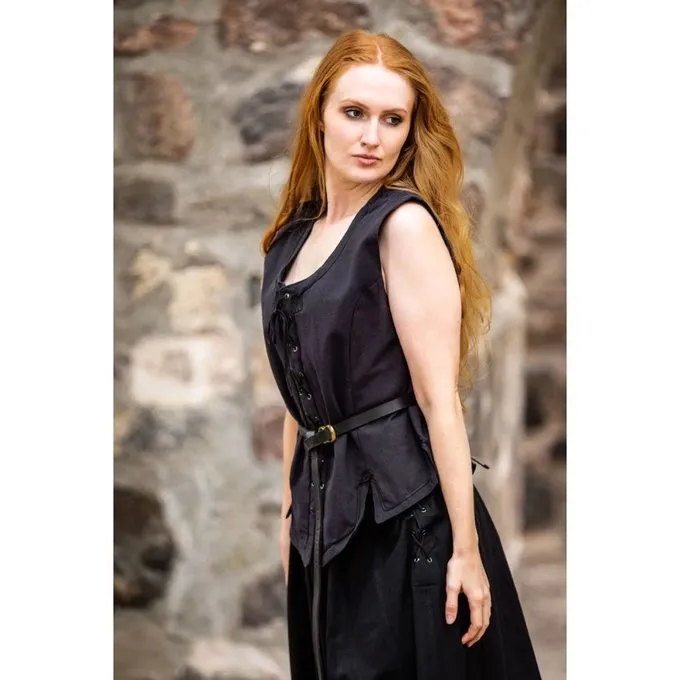 Cette veste sans manches est fait de coton. A l’avant, il peut être enfilé avec une corde à l’arrière et il peut être ajusté à la bonne dimension avec un lacet. La veste est disponible dans les couleurs noir, vert, bleu, rouge, brun foncé et le tabac dans les tailles S à XXXL.