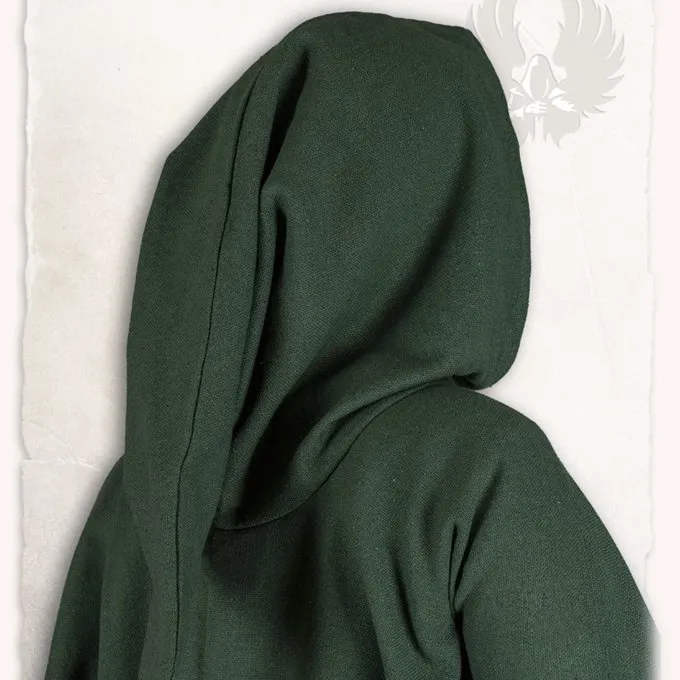 Cette Cape convient à la reconstitution, au cosplay et à la larp. La Cape est faite de toile. Cette cache de longueur moyenne est parfaite pour les batailles et créer des couches dans votre costume. Le devant du Cap est plus court, cela donne au porteur encore plus de liberté de mouvement. La cape peut être fermée avec un bouton.