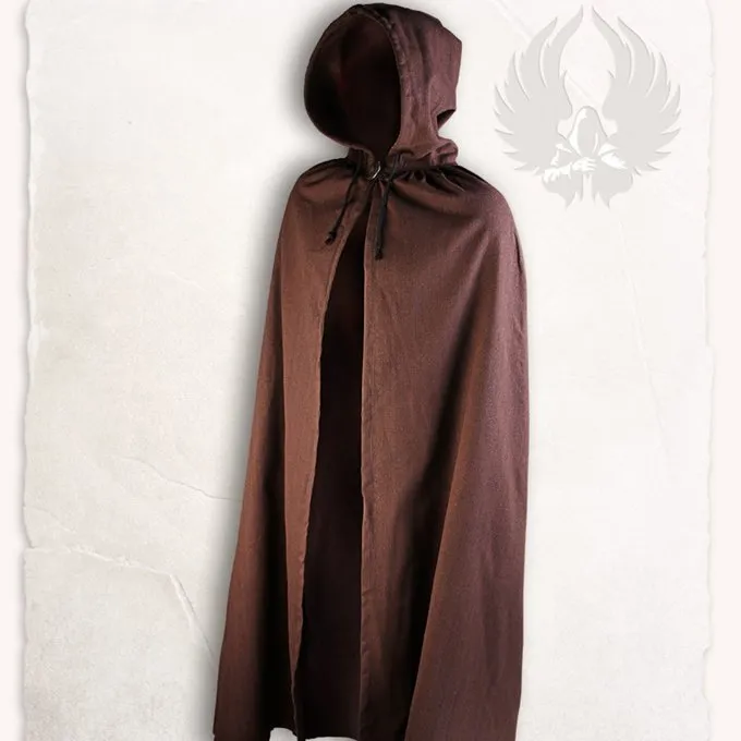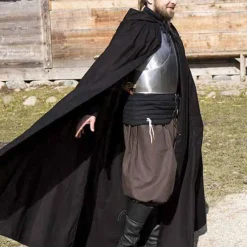 Cette cape convient à la reconstitution, au cosplay et à la larp. Il est fait de toile de coton, qui protège le porteur contre la pluie et le vent. La cape a une coupe classique et est équipée d’un grand capot. La cape peut être fermée avec un bouton. Dans l’ensemble, cette cape est prête à devenir votre fidèle compagnon!