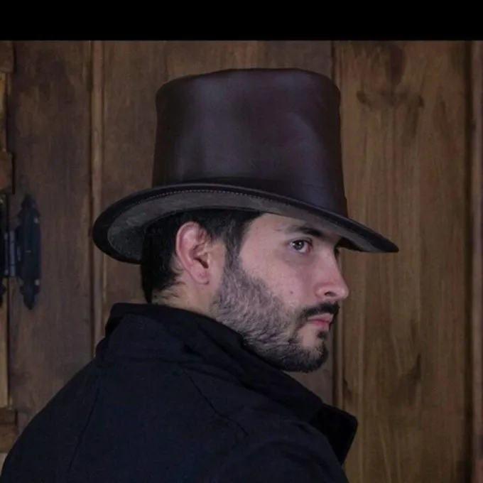 Ce chapeau est une réplique de modèles populaires dans le monde entier au XVIIIe siècle. Ces chapeaux sont fabriqués à la main par le fabricant espagnol « Rawblade » et sont en cuir de haute qualité. L’artisanat traditionnel et les normes de qualité les plus élevées garantissent la durabilité et la stabilité dimensionnelle. Un chapeau en cuir est un compagnon fidèle par mauvais temps et un accessoire expressif pour de nombreux costumes. Ce chapeau est un chapeau haut de gamme et très adapté aux plaisanteries, aux personnages sombres, mais aussi à Real Gentlemen, « Steampunk » et aux costumes du XVIIIe siècle.